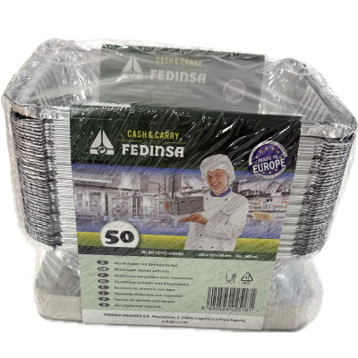 C-R 861 L + CR - Envase de aluminio rectangular con borde rizado con tapa de cartón 220x158x38 mm