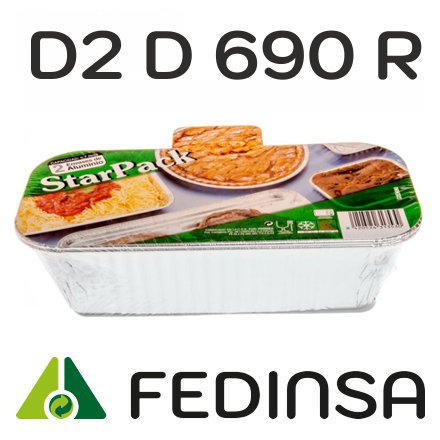 D 2 D 690 R - Envase de aluminio rectangular con borde rizado 202x92x56 mm