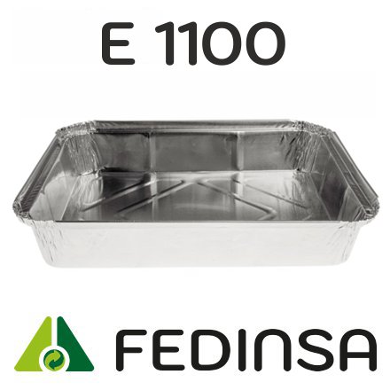 E 1100 - Envase de aluminio rectangular con borde rizado y canto alzado 227x177x35 mm.