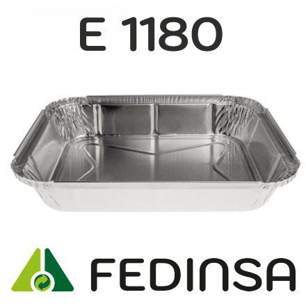 E 1180 - Envase de aluminio rectangular con borde rizado y canto alzado 240x188x35 mm.