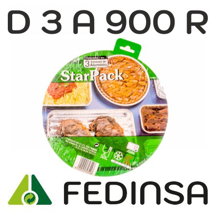 Pack de 3 envases redondos de aluminio de Ø247 x 23 mm (900 ml). Se presenta en formato Starpack diseñado para mostradores verticales en líneas de venta.
