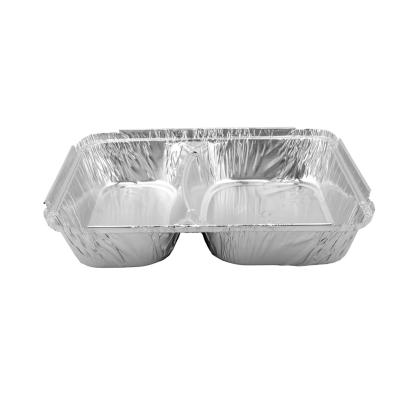 Envase de aluminio rectangular compartimentado con borde rizado y canto alzado 230x180x30 mm