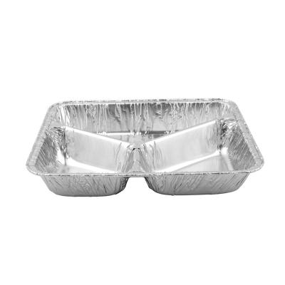 Envase de aluminio rectangular compartimentado con borde rizado 227x177x40 mm