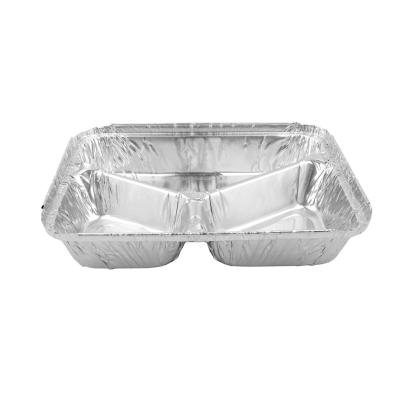 Envase de aluminio rectangular compartimentado con borde rizado y canto alzado 227x177x40 mm