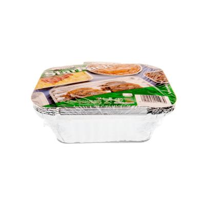 Envase de aluminio rectangular con borde rizado y tapa 147x123x40 mm