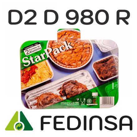 D 2 D 980 R - Envase de aluminio rectangular con borde rizado 222x157x38 mm