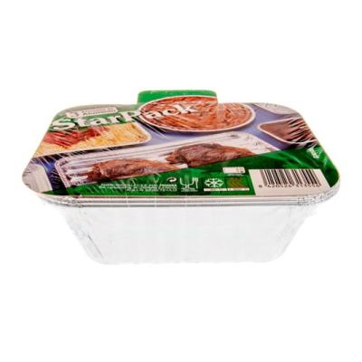 Envase de aluminio rectangular con borde rizado 144x119x45 mm.