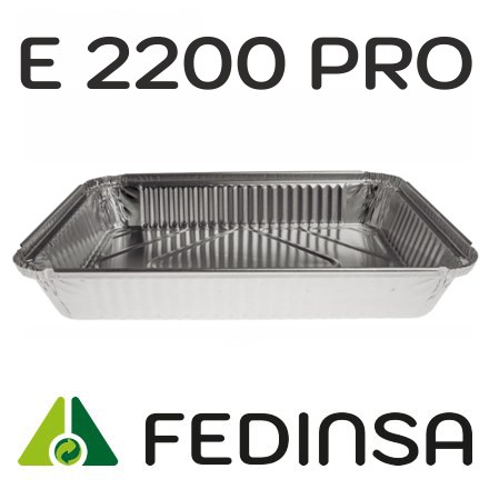 E 2200 PRO - Envase de aluminio rectangular con borde rizado y canto alzado 315x215x38 mm