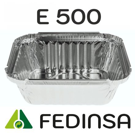 E 500 - Envase de aluminio rectangular con borde rizado y canto alzado 147x123x40 mm