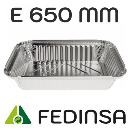 E 650 MM - Envase de aluminio rectangular con borde rizado y canto alzado 192x141x33 mm
