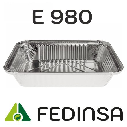 E 980 - Envase de aluminio rectangular con borde rizado y canto alzado 220x158x38 mm