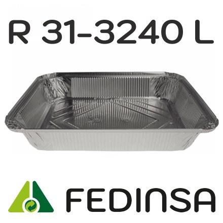 R 31–3240 L - Envase de aluminio rectangular con borde rizado y canto alzado 318x258x50 mm