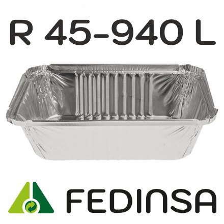 R 45–940 L - Envase de aluminio rectangular con borde rizado y canto alzado 201x136x50 mm