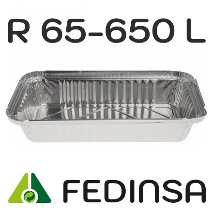 R 65–650 L - Envase de aluminio rectangular con borde rizado y canto alzado 224x132x34