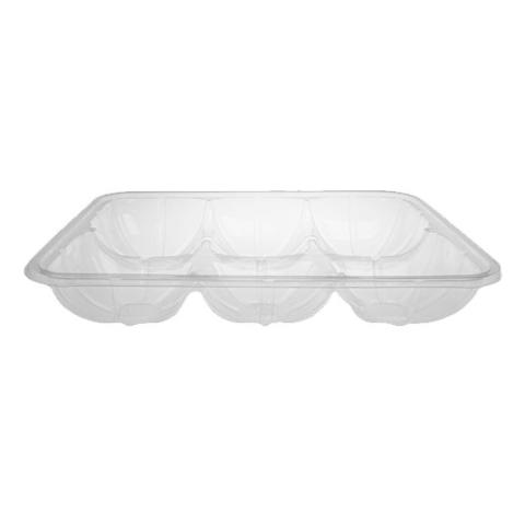 Barquette rectangulaire compartimenté en plastique PET transparent 250x182x40 mm.